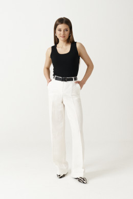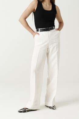 | 46 | Брюки: Высота посадки - 29см, Длина брюк без пояса - 110см, Длина по внутреннему шву - 85.5см, Ширина брючин сверху - 72см, Обхват брюк по низу - 61см, Ширина по бедрам - 54см, Ширина по талии - 38.5см; |