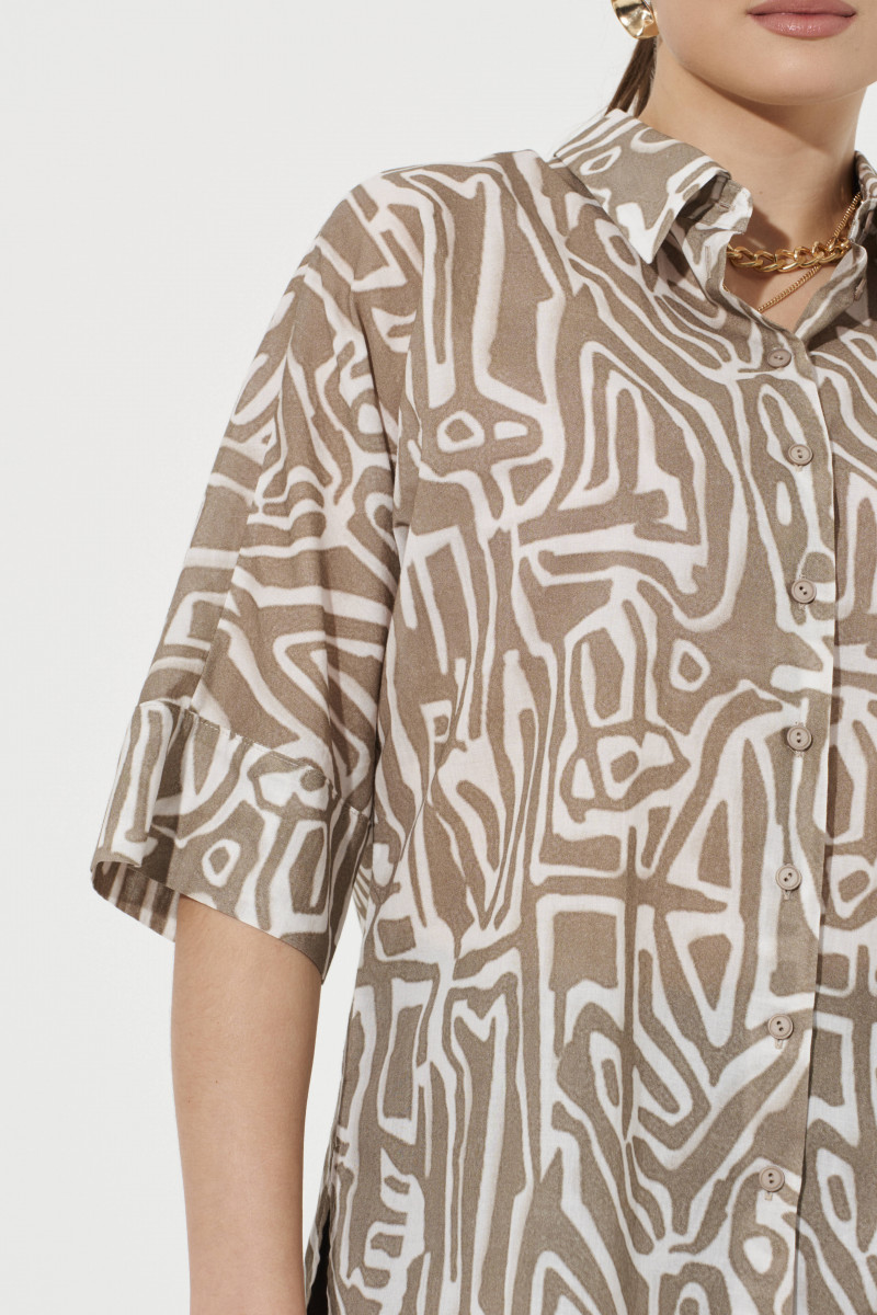 Блузка женская из хлопчатобумажной ткани прямого силуэта для повседневной носки. В блузке имеется центральная бортовая застежка на девять обметанных петель и девять пуговиц. В боковых швах имеются небольшие разрезы. Горловина обработана рубашечным воротником с отрезной стойкой. Блузка с втачным рукавом длиной чуть ниже локтя, низ рукава обработан притачной манжетой. Очень легкая и воздушная блузка подарит вашему телу комфорт, а также будет отлично смотреться на вашей фигуре.