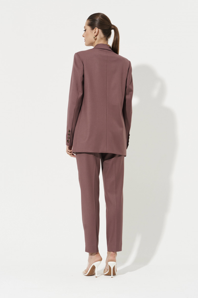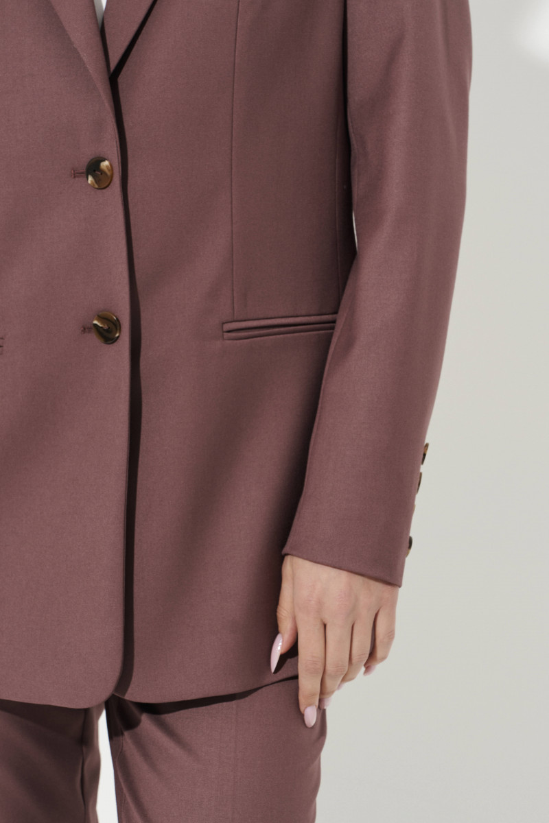 Жакет женский из вискозной ткани для повседневной носки. Жакет полуприлегающего силуэта. Застежка в жакете центральная бортовая на обметанные петли и пуговицы. Перед с рельефами и двумя прорезными карманами в рамку с двумя обтачками, а также имеется нагрудная листочка. Спинка со средним швом. Жакет с отрезным бочком. Горловина обработана пиджачным воротником. Рукава втачные длинные, по низу рукава имеется шлица с застежкой на обмётанные петли и пуговицы. Очень стильный жакет в элегантном кофейном оттенке, который будет создавать отличное настроение на каждый день. В данном жакете вы обязательно будете блистать.