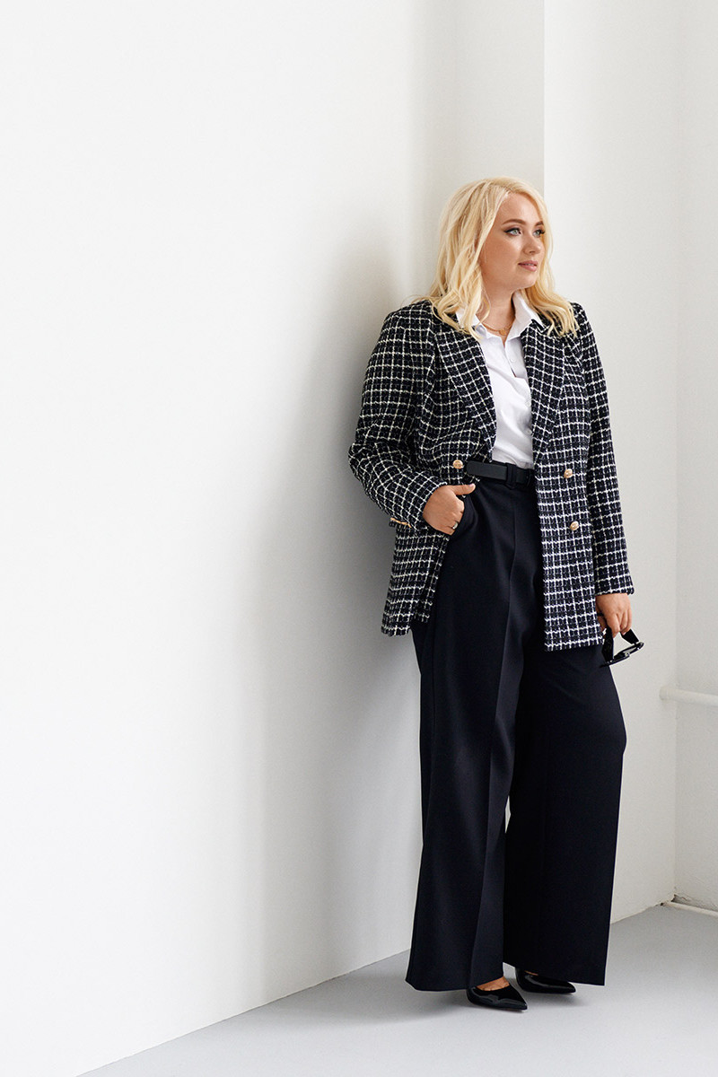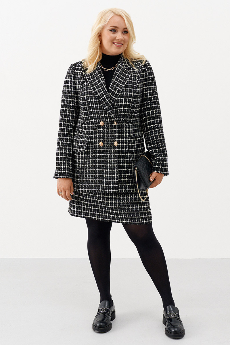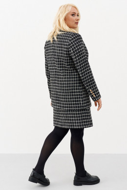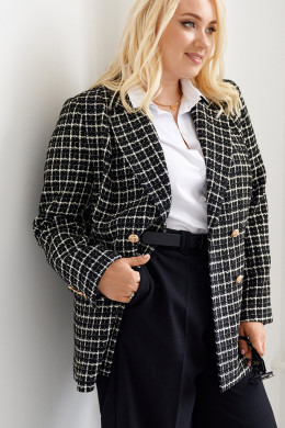 Жакет женский бренда Ketty для повседневной носки, из ткани-твид, на подкладке, полуприлегающего силуэта с втачным рукавом и английским воротником. Перед дополнен двумя прорезными карманами с клапанами. Двубортная застежка на четыре золотые пуговицы. Женский удлиненный жакет создан для стильных девушек и женщин. Длинный базовый пиджак двубортный, как жакет или кардиган, украсит повседневный образ. Модный твидовый пиджак имеет приталенный силуэт. Достаточно объемный, не обтягивающий. Клетчатый пиджак офисный больших размеров будет отлично смотреться на женщинах и девушках разной комплекции. Простой и красивый пиджак на пуговицах сделает вас визуально стройнее и выше. Такая одежда подходит для делового и офисного стиля, вечернего образа, на свидание, на прогулку. Благодаря своему составу, классический пиджак плотный, не мнется.