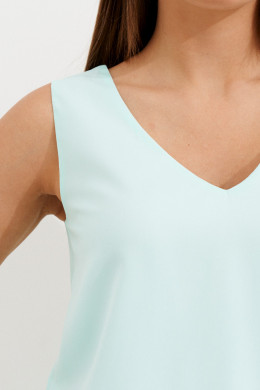 Блузка свободного силуэта из однотонной ткани без рукава на вискозной подкладке. Красивая легкая блузка, слегка расширенная к низу. Стильная вещь, которая отлично сочетается с жакетами, пиджаками и кардиганами. Однотонная блузка станет основой вашего гардероба и разнообразит комплекты повседневной одежды, а также может стать частью вечернего образа.