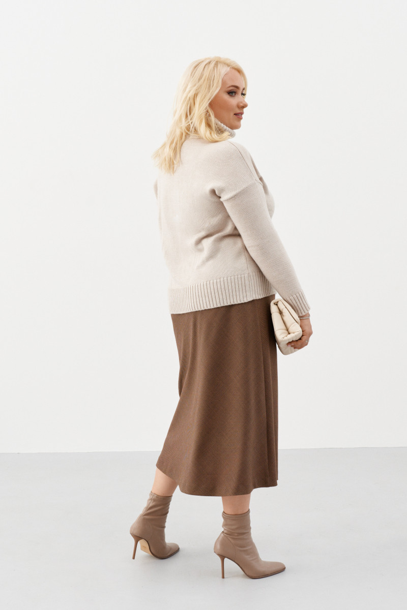 Модная юбка трапеция от бренда Ketty, длина миди - тренд сезона. Юбка в гусиную лапку застегивается на потайную молнию в боковом шве. Крой соответствует стандартному размеру и обеспечивает идеальную посадку по фигуре. Подойдет на любой случай и отлично впишется в любой гардероб. Данная модель женской юбки солнце подходит на сезоны: весна, осень, зима. Идеально подойдёт для прогулок, работы, отдыха, свиданий, офиса, праздников и для повседневной носки. В женской юбке вы будете чувствовать себя уверенно и комфортно! В комплекте идёт съемный пояс с пряжкой из основной ткани.