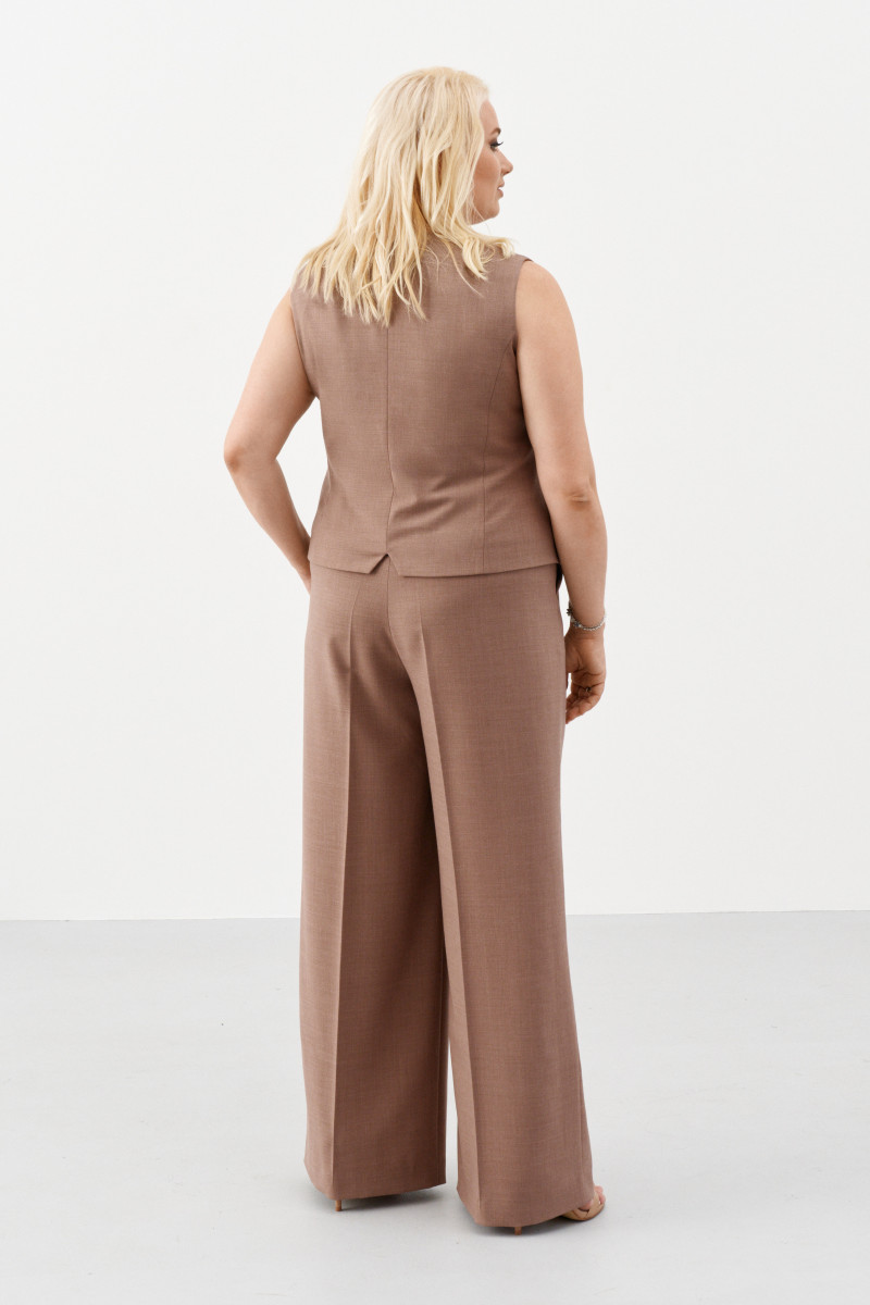 54Брюки: Высота посадки - 32см, Длина брюк без пояса - 109.5см, Длина по внутреннему шву - 82.5см, Ширина брючин сверху - 78.5см, Обхват брюк по низу - 66см, Ширина по бедрам - 59см, Ширина по талии - 46см;
