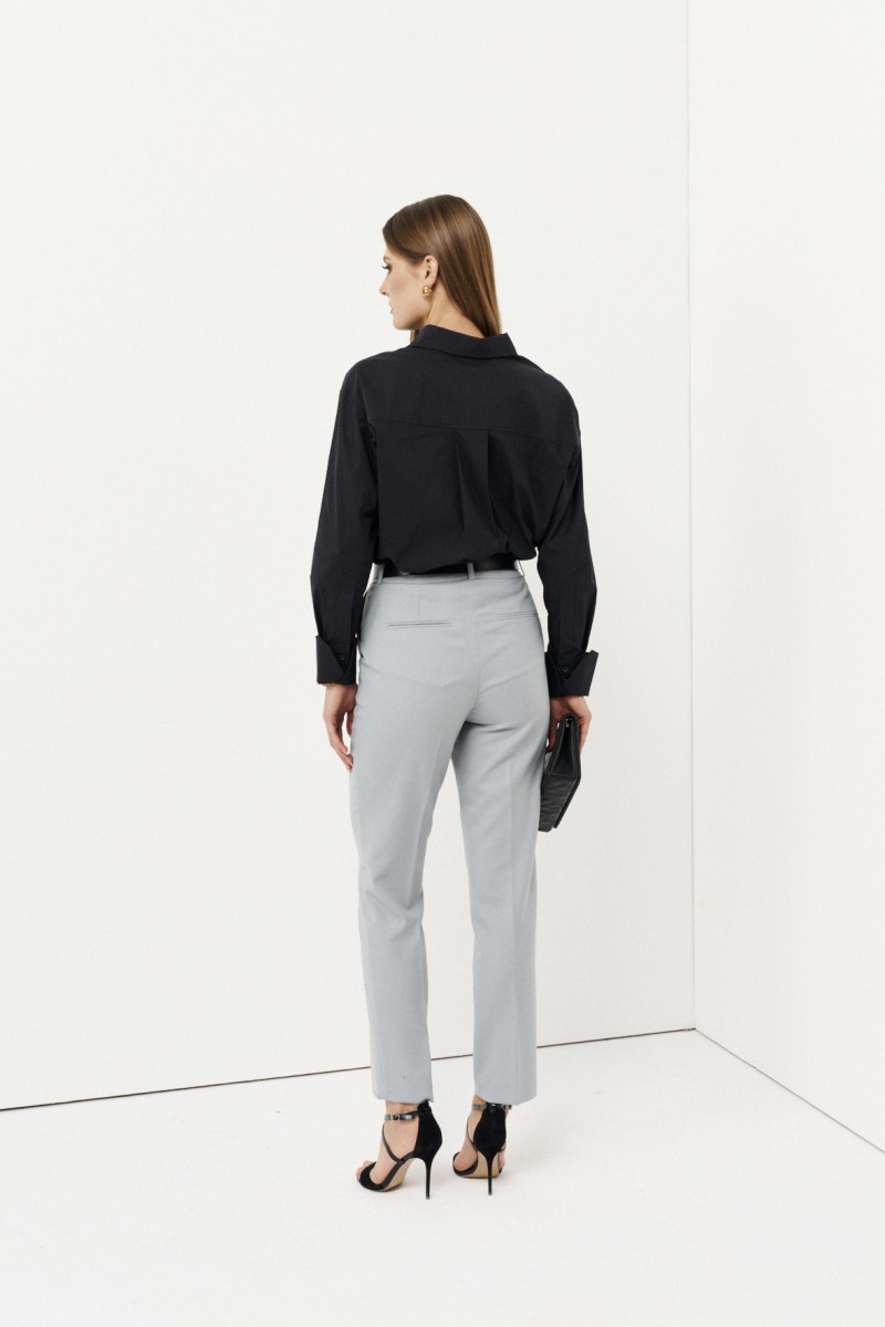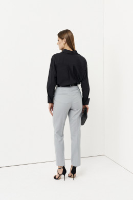Стильная классическая рубашка от бренда Ketty с необычными модными рукавами. Рукав втачной со средним швом. По низу рукава оформлен высокий отложной манжет, который легко отрегулирует длину рукава. Воротник рубашечный, отложной, на стойке. Застёжка спереди центральная на планку с петлями и пуговицами. Спереди выполнен один нагрудный карман. Спинка длиннее переда, на спинке сделана встречная складка. Линия низа округлая. Прекрасный вариант рубашки для работы в офисе и на каждый день.