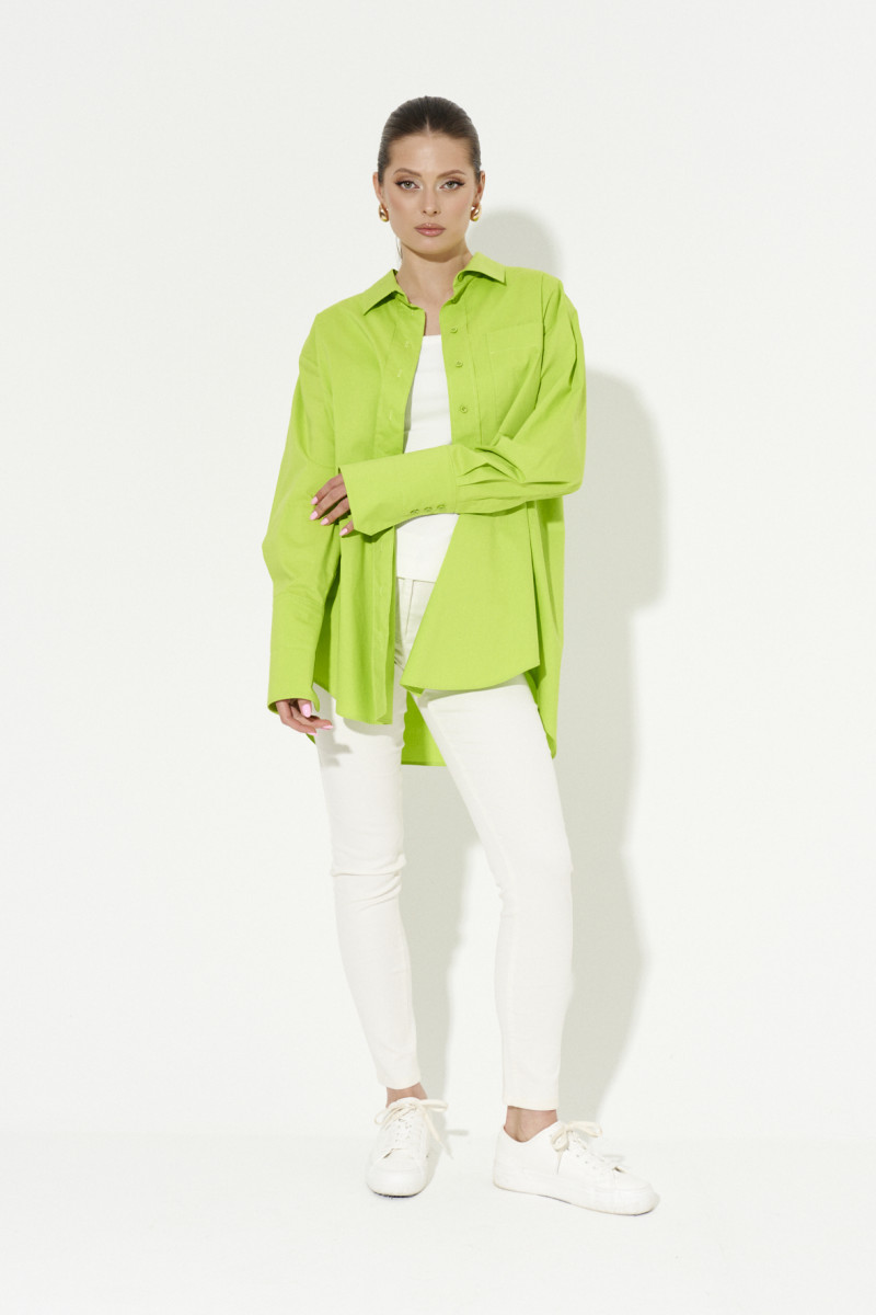 Стильная классическая рубашка от бренда Ketty с необычными модными рукавами. Рукав втачной со средним швом. По низу рукава оформлен высокий отложной манжет, который легко отрегулирует длину рукава. Воротник рубашечный, отложной, на стойке. Застёжка спереди центральная на планку с петлями и пуговицами. Спереди выполнен один нагрудный карман. Спинка длиннее переда, на спинке сделана встречная складка. Линия низа округлая. Прекрасный вариант рубашки для работы в офисе и на каждый день.