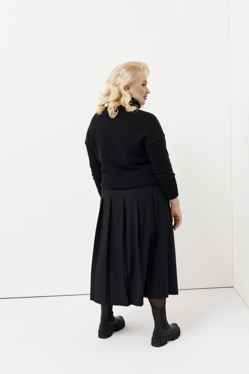 Черная юбка А-силуэта с оригинальным кроем от бренда Ketty станет идеальным решением для любительниц женственности и делового стиля. Юбка женская миди с поясом фиксируется сбоку на одну пуговицу в тон. Сбоку сделан акцент в виде разреза и застежек-пуговиц. Юбка женская превосходно сидит по фигуре и корректирует область талии. Юбка декорирована плиссировкой с широкими складками и создает дополнительный объем и легкость. Длинная юбка с разрезом имеет подкладку для комфортной носки. Юбка миди предполагает многообразие вариантов для комбинирования: с джемпером, базовой рубашкой, водолазкой. Идеально подойдёт для прогулок, работы, отдыха, свиданий, офиса, праздников и для повседневной носки. В женской юбке вы будете чувствовать себя уверенно и комфортно!