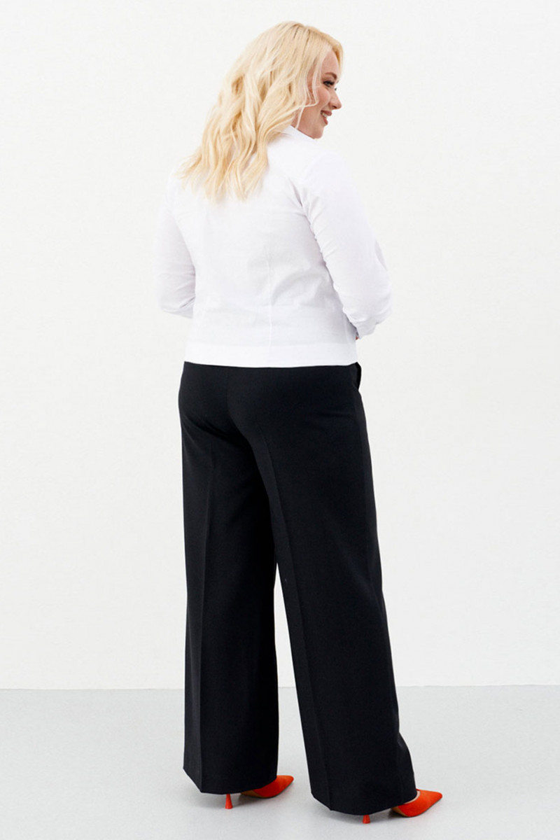 Блузка из хлопковой ткани как для повседневной носки так и для нарядных случаев. Изделие с запахом укороченное на потайной резинке. Дополнение: запах на кнопке, сбоку сделаны застроченные складки. Горловина обработана рубашечным воротником с отрезной стойкой. Рукава втачные длинные, низ рукава обработан притачной манжетой. Очень красивая и элегантная блузка, которая будет отлично сидеть на любой фигуре.