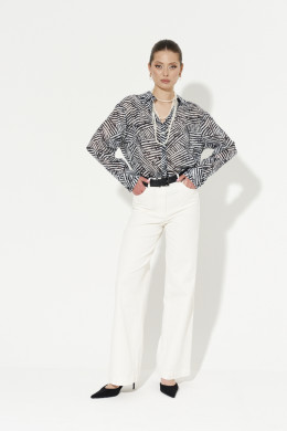 Брюки женские из джинсовой ткани с большим содержание хлопка. Брюки чуть расширены к низу. Верхний срез брюк обработан притачным поясом с застежкой на одну обметанную петлю и одну пуговицу, а также в среднем шве имеется застёжка-молния. Брюки имеют шлевки, что дает возможность носить их под ремень. Передняя часть брюк имеет два кармана с подкройным бочком. Задняя часть брюк имеет отрезную кокетку и два накладных кармана. Стильные и очень удобные брюки, которые безусловно будут отлично сидеть и подчеркивать всю красоту вашей фигуры.