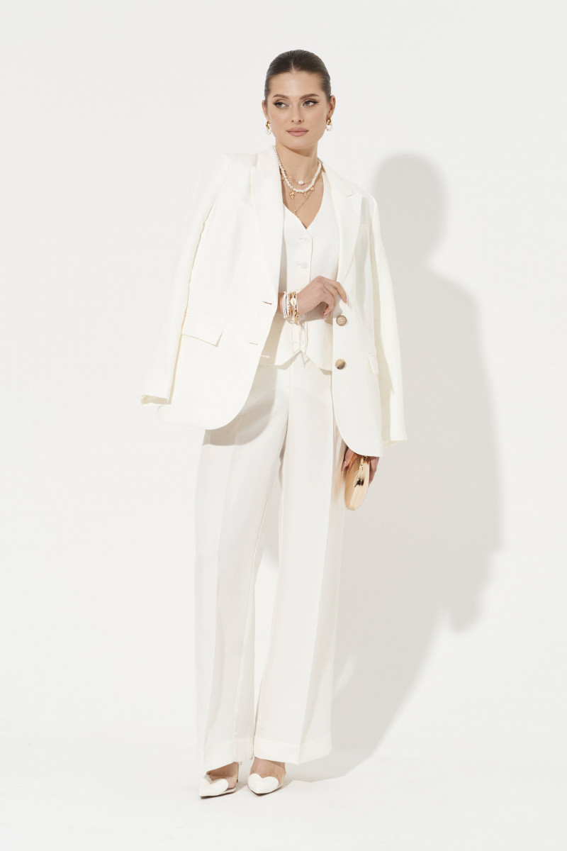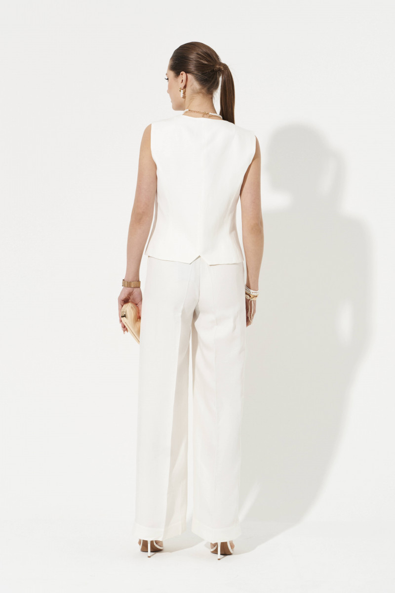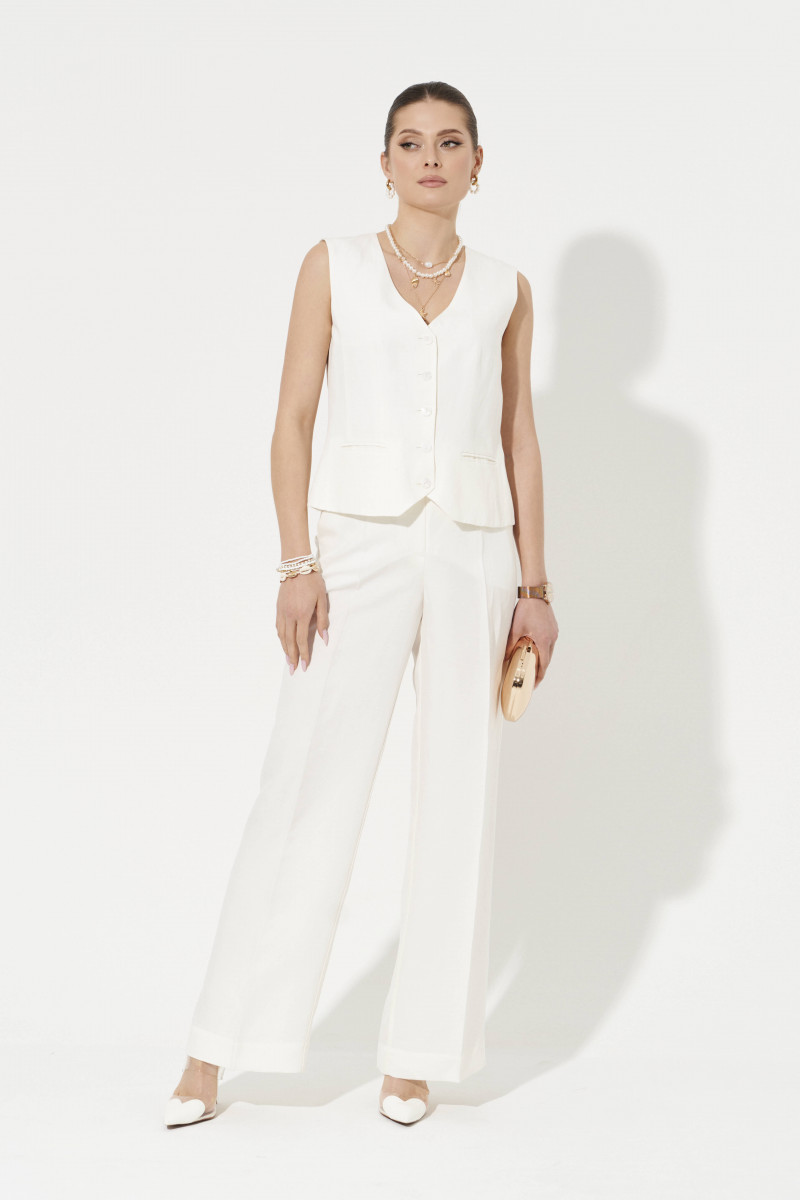 54Брюки: Высота посадки - 31см, Длина брюк без пояса - 112см, Длина по внутреннему шву - 83.5см, Ширина брючин сверху - 79см, Обхват брюк по низу - 66см, Ширина по бедрам - 59.5см, Ширина по талии - 47см;