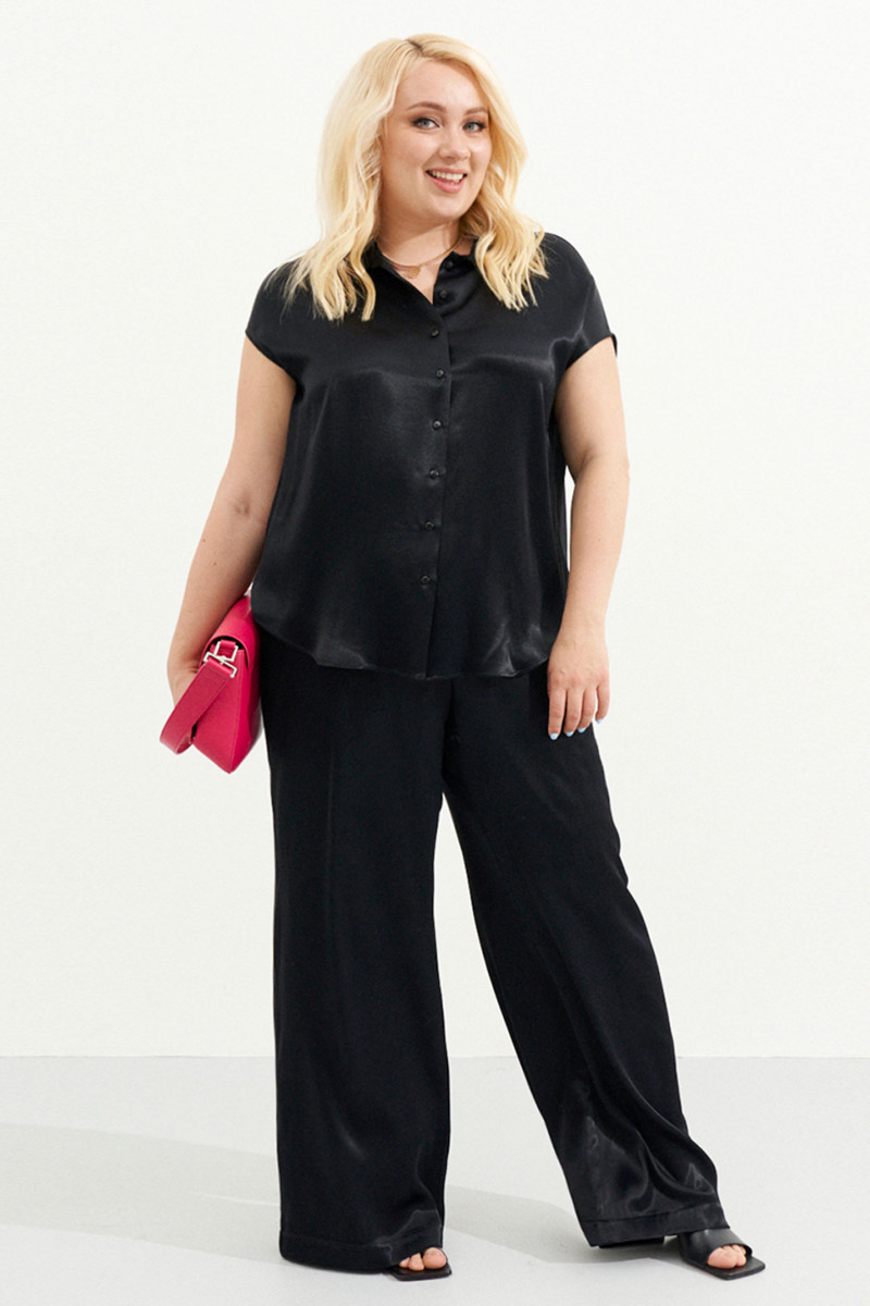 Широкие вискозные брюки бренда Ketty отлично подойдут для повседневного стиля. Брюки имеют широкие штанины, позволяющие коже дышать в жаркую погоду. Они сделаны из блестящего вискозного материала, что делает их легкими и приятными к телу. Широкие брюки создают ощущение свободы и легкости, а блестящая вискоза добавляет нотку роскоши и изысканности в образ. В таких широких брюках женщина будет чувствовать себя уверенно и стильно. Резинка в талии позволяет легко надевать их, в том числе и на беременных женщин. Вискозные брюки свободного кроя пойдут как для повседневного, так и для праздничного образа. Благодаря своему легкому материалу, они отлично подойдут для пляжного отдыха и походов по морю. Это практичный и удобный вариант для активного отдыха. В брюках есть карманы. Вискозные брюки длинные со слегка завышенной талией, что делает их более яркими и модными. Летние брюки однотонные и яркие. Они отлично сочетаются с обувью на каблуке, а также с более спортивной обувью, например, с кедами. Широкие вискозные брюки - это универсальный предмет гардероба, который может стать стильным дополнением к любому образу. Легкие и приятные к телу, они станут незаменимой вещью в летнем гардеробе каждой девушки. В дополнение к брюкам можно купить свободную рубашку, чтобы дополнить образ. Такой костюм может быть идеальным выбором для особых событий, вечеринок и деловых встреч. Он подходит как для смелых экспериментов, так и для классических образов. В таком костюме каждая женщина будет выглядеть уверенно и привлекательно.