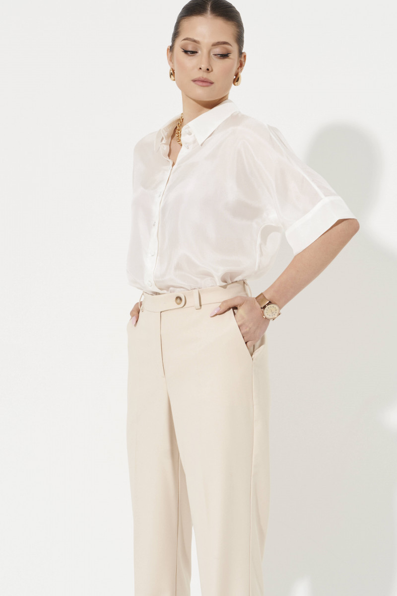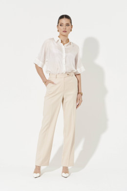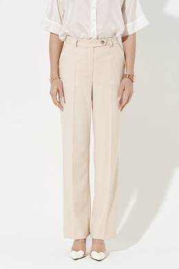 Брюки женские из поливискозной ткани для повседневной носки. Брюки прямого силуэта. Верхний срез брюк обработан притачным поясом с застежкой на одну обметанную петлю и одну пуговицу, а также в среднем шве брюк имеется застежка на тесьму-молнию. Брюки имеют шлевки, что дает возможность носить их под ремень. В боковом шве имеются потайные карманы. Очень нежные и стильные брюки, которые обязательно очаруют вас своей идеальной посадкой. В данных брюках вы будете чувствовать себя уверенно и обязательно будете в центре всеобщего восхищения.