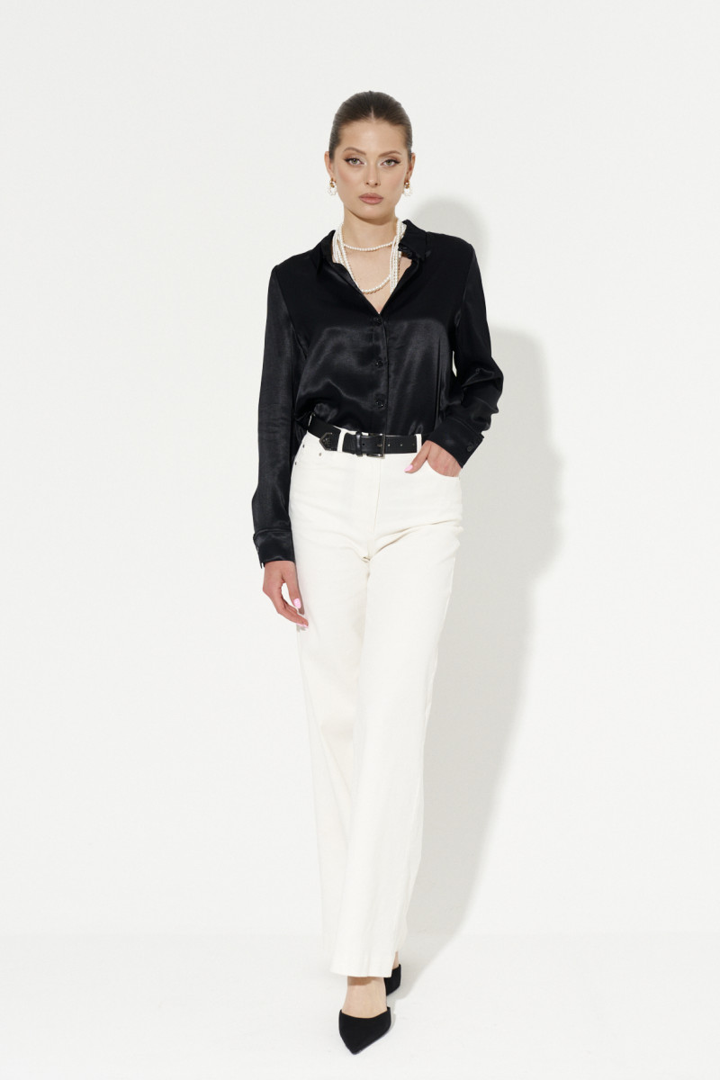 Блузка женская из вискозной ткани для повседневной носки. Блузка прямого силуэта. Застежка на девять обметанных петель и девять пуговиц. По спинке имеется кокетка. Горловина обработана рубашечным воротником с отрезной стойкой. Низ рукава обработана притачной манжетой, застежка на две обметанные петли и две пуговицы. Блузка станет идеальным вариантом для любой прогулки, а также разнообразит ваш образ стильным фасоном.
