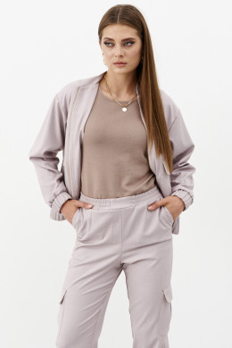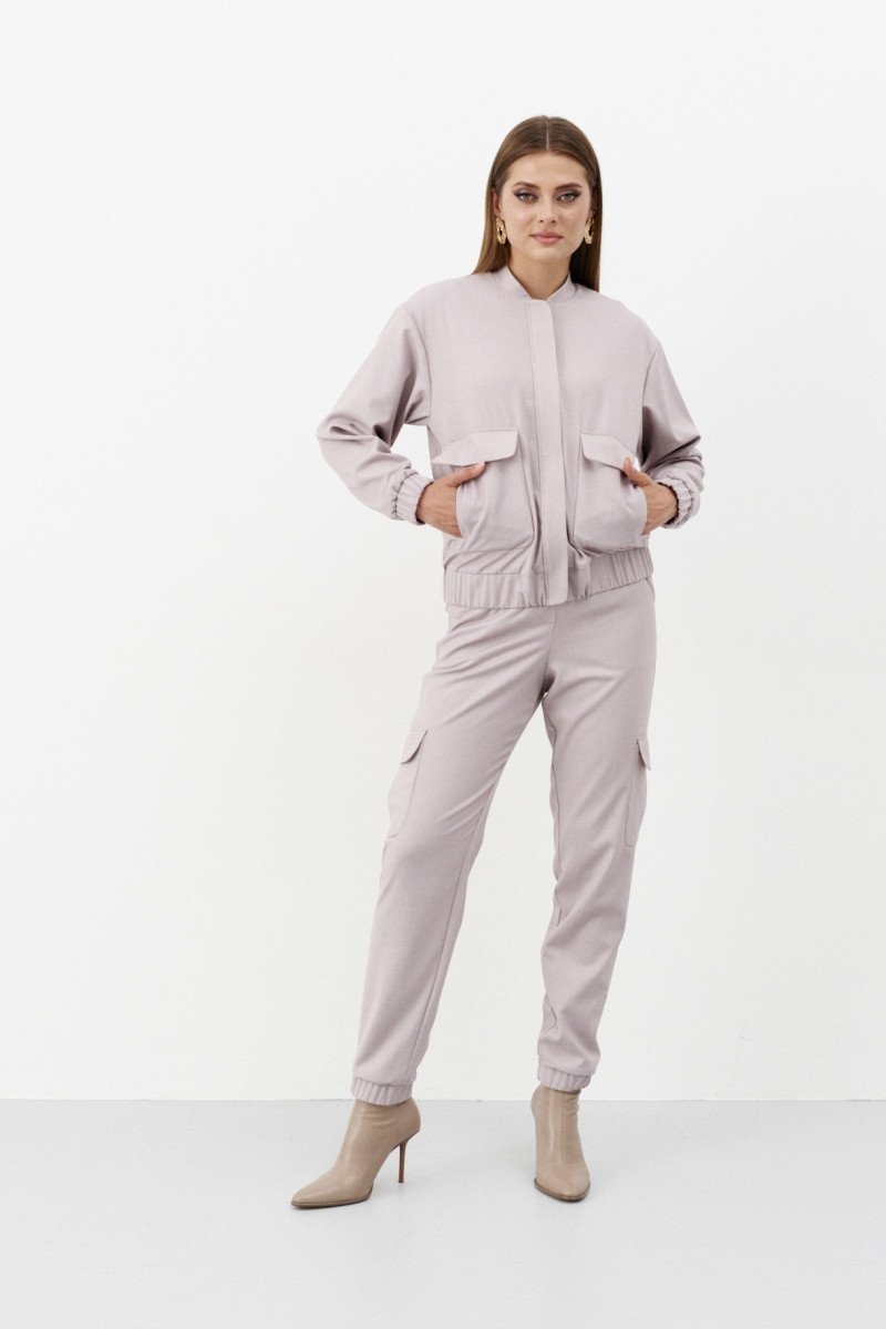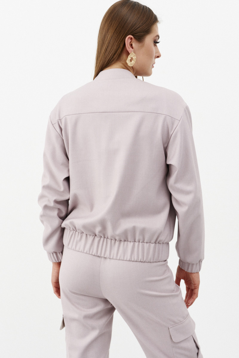 Бомбер выполнен с небольшой стойко по горловине, накладными карманами с клапаном. По низу и рукавам вставлена резинка.