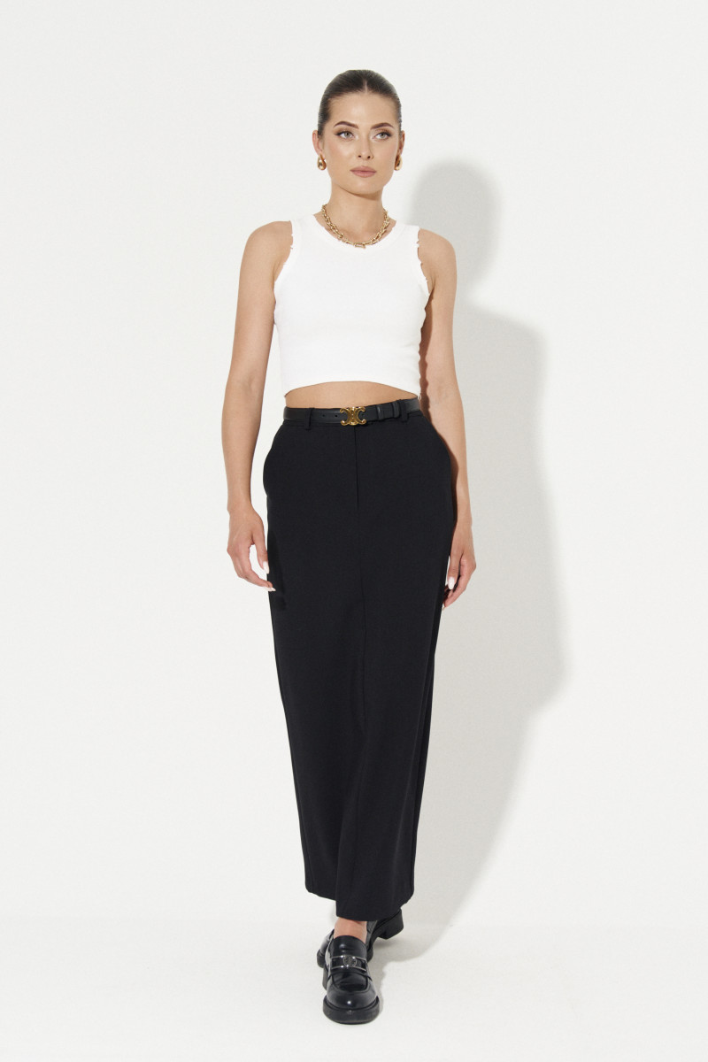 Юбка женская прямого силуэта из смесовой ткани для повседневной носки. Верхний срез юбки обработан притачным поясом, застежка на крючок, а также имеется застежка на тесьму-молнию в среднем шве юбки. В юбке расположен в боковом шве карман с подкройным бочком. Заднее полотнище юбки имеет две талиевые вытачки и два прорезных кармана в рамку с двумя обтачками, а также в среднем шве юбки располагается шлица. Юбка на поливискозной подкладке. Отличный классический вариант юбки, которая будет гармонично смотреться под любые изделия.
