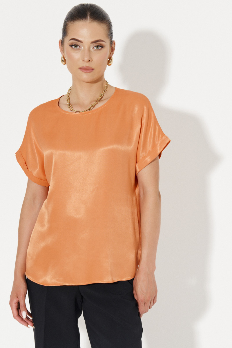 Блузка из вискозной ткани для повседневной носки. Блузка прямого силуэта. Горловина обработана притачной бейкой. Линия плеча слегка спущена. Пройма обработана притачной манжетой. По боковым швам имеются разрезы. Идеальная базовая блузка на любой выход.